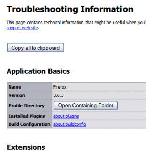 பிறகு மறுபடியும் Troubleshooting Information பகுதிக்கு செல்லுங்கள். இங்கு extensions பகுதியில் நீங்கள் நீக்க விரும்பும் நீட்சிக்கு நேராக உள்ள ID என்ன என்பதை குறித்துக் கொள்ளுங்கள்.
